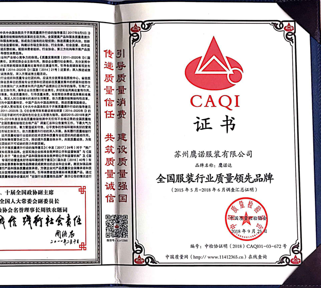 鹰诺达荣誉证书 工作服案例新闻 鹰诺达工作服展厅