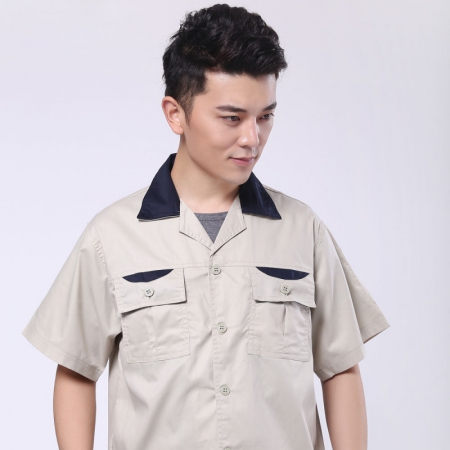 米色拼藏青CVC纱卡春秋工衣AC112