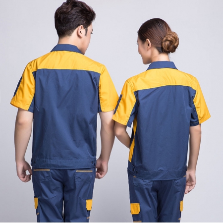 苏州鹰诺服装:橘黄拼黄色短袖工作服AD09-5
