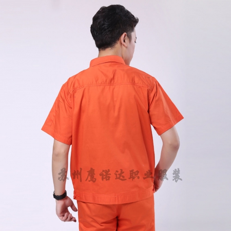 苏州鹰诺服装:橘黄拼黄色短袖工作服AD09-5