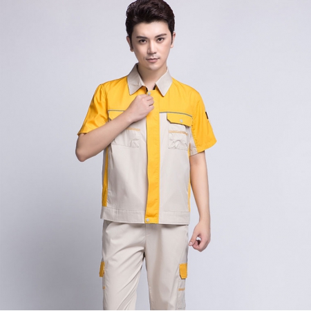 深蓝配桔红短袖工作服AD069