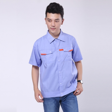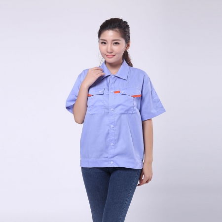 苏州鹰诺服装:浅兰短袖工作服AD098-DX