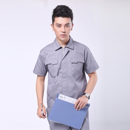 苏州鹰诺服装:银灰色短袖工作服AD077-DX