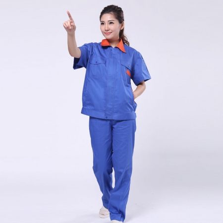 苏州鹰诺服装:艳蓝配大黄短袖工作服AD080-DX