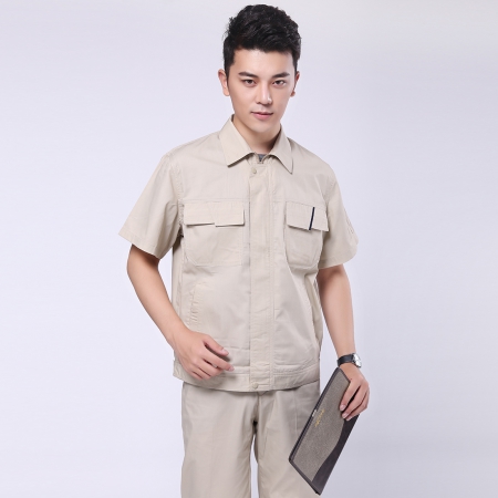 苏州鹰诺服装:米色拼藏青纯棉工作服AD087-QM
