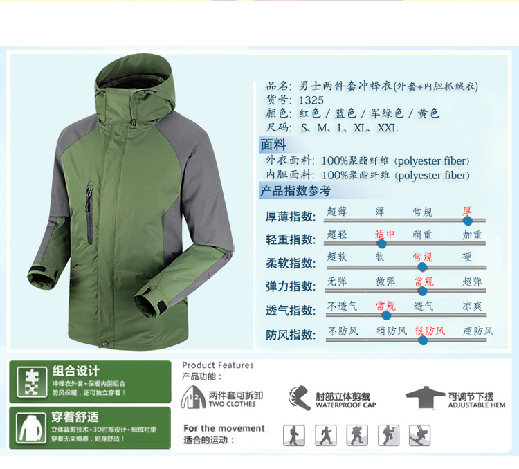 冬季新款冲锋衣男加绒加厚冲锋棉衣防水登山服CFDG1325