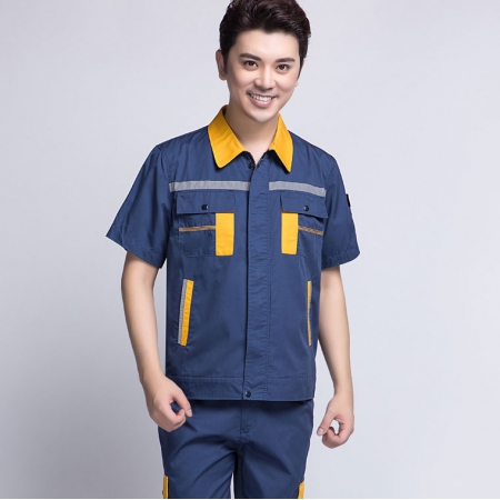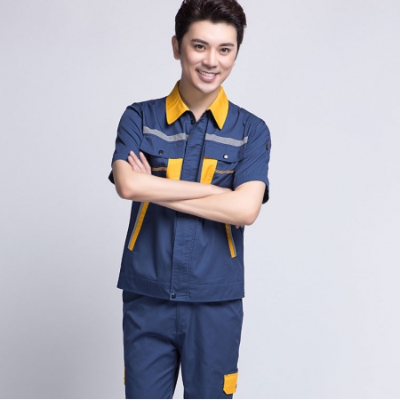 苏州鹰诺服装:灰色拼藏青夏季工作服AD089