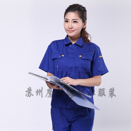 苏州鹰诺服装: 米色拼兰色工作服AC087