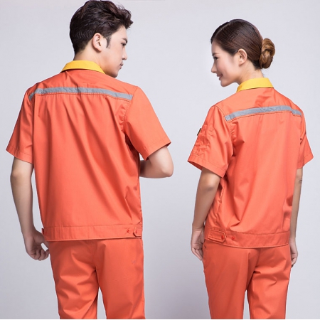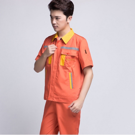 苏州鹰诺服装:深蓝配桔红春秋工作服AC069