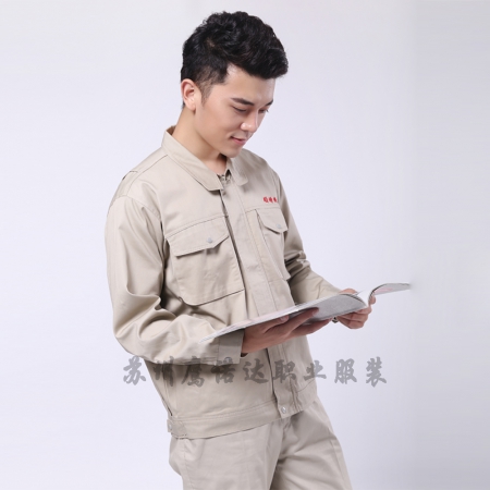 苏州鹰诺服装:米色拼藏青CVC纱卡春秋工衣AC112