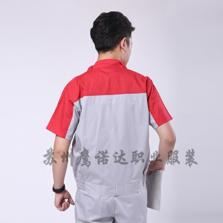 苏州鹰诺服装:灰色拼橘黄工作服AC024