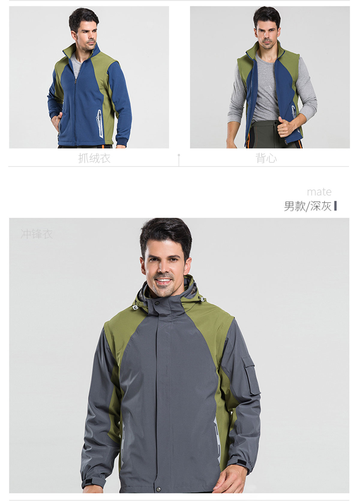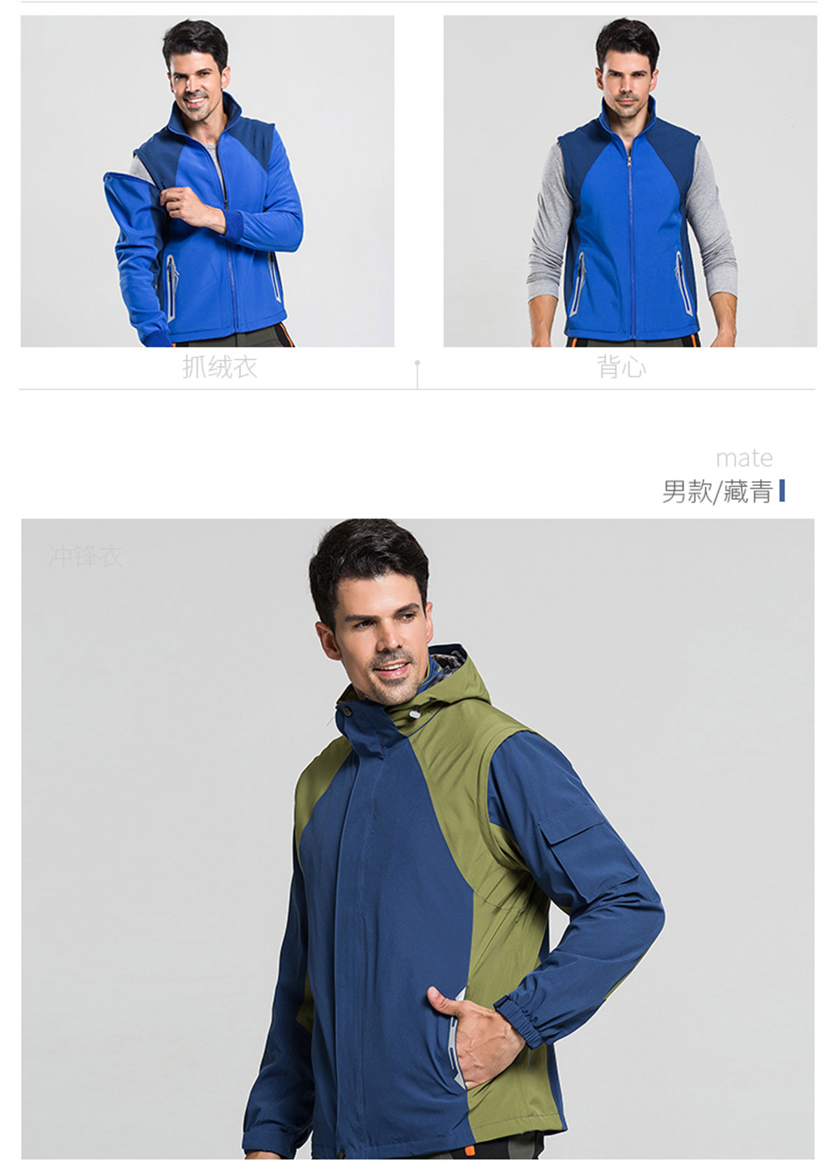 - 游客于 2019-01-08 13:36:55 发表男女款六合一冲锋衣CFDG1110