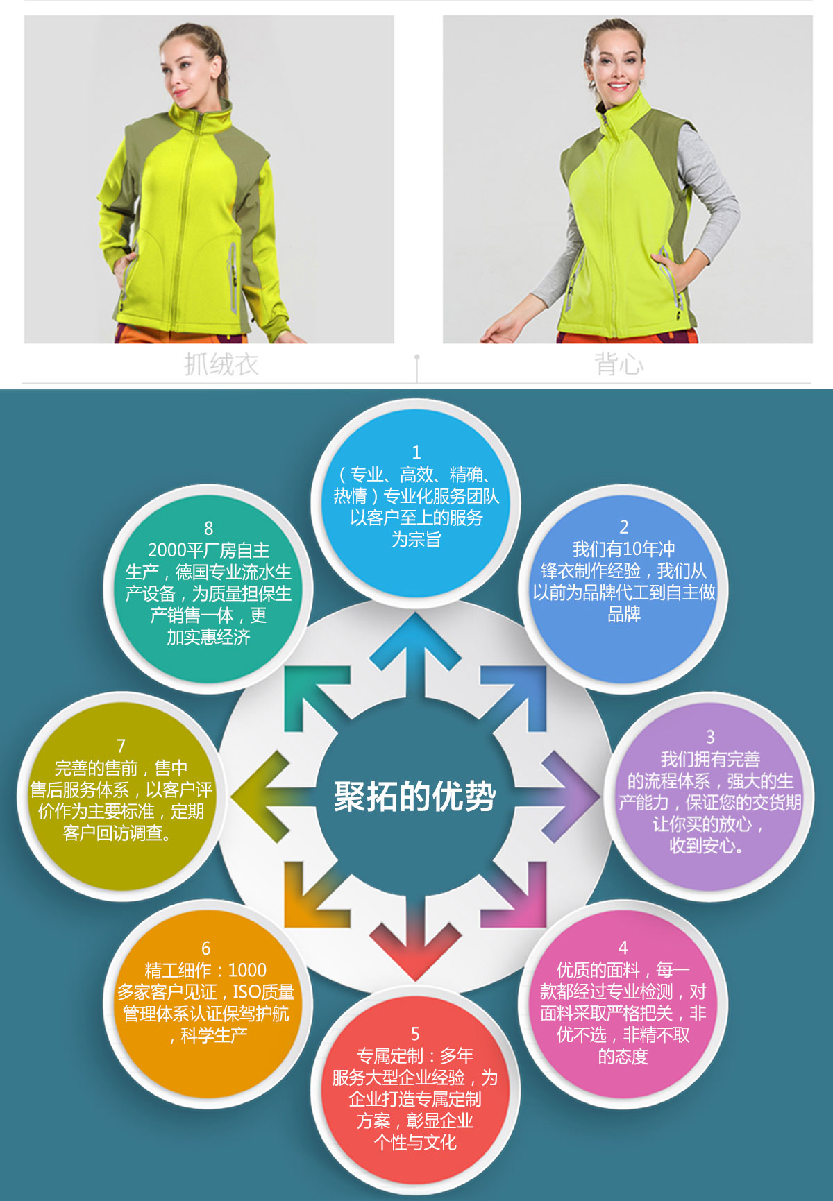 正是坚守着这种信念,历经16年的发展,由最初的10多人的起家的小企业,发展到今天拥有企业盐城骏放服饰,张家港鹰吉派劳保,张家港凯宏劳保下属3家企业,员工人数5000余人的大型企业,2001年按国际惯例组建了三大中心,生产中心以白大褂为龙头,推动其它产品,如t恤,西服,冲锋衣,安全帽等,营销中心从事产品开发和市场销售,目前遍及全国的营销网络已经形成。售后中心以帮助顾客解决问题的原则,7*24小时服务!