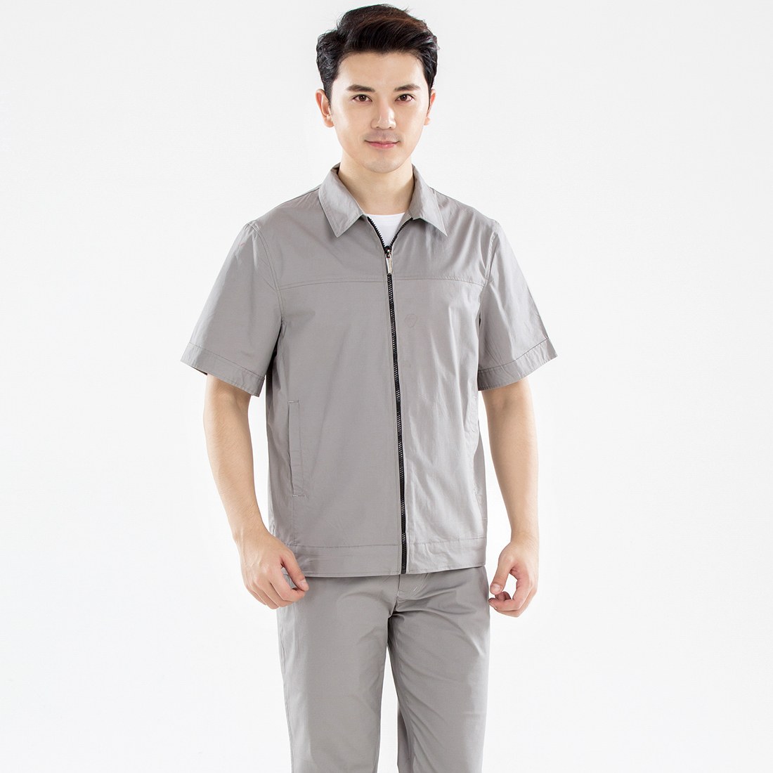 浅色拉链夏季工作服AD19-1