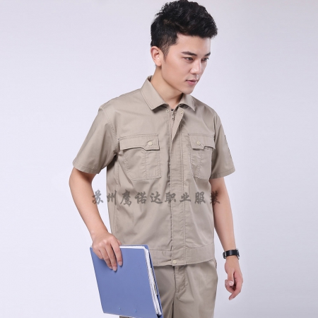 苏州鹰诺服装:黄拼驼色工作服AC20-4