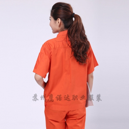 苏州鹰诺服装:橘黄拼黄色短袖工作服AD09-5