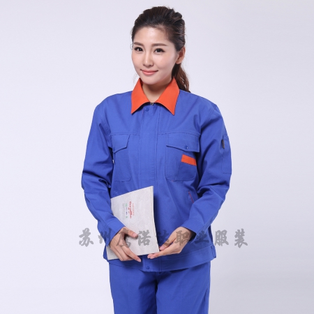 苏州鹰诺服装:深蓝配桔红色沈阳工作服AC069