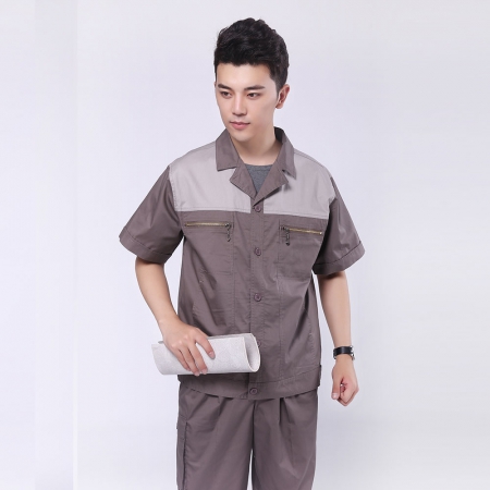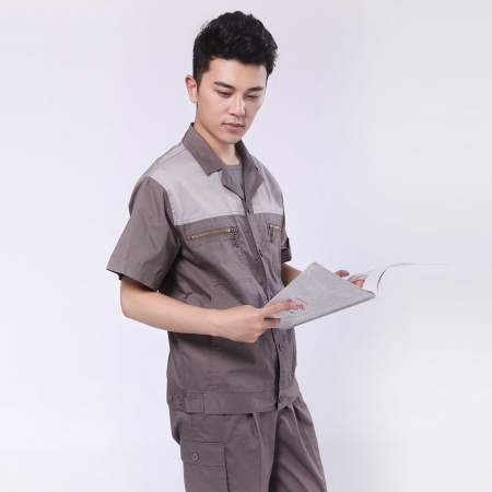 苏州鹰诺服装:银灰拼红色短袖工作服AD064-DX