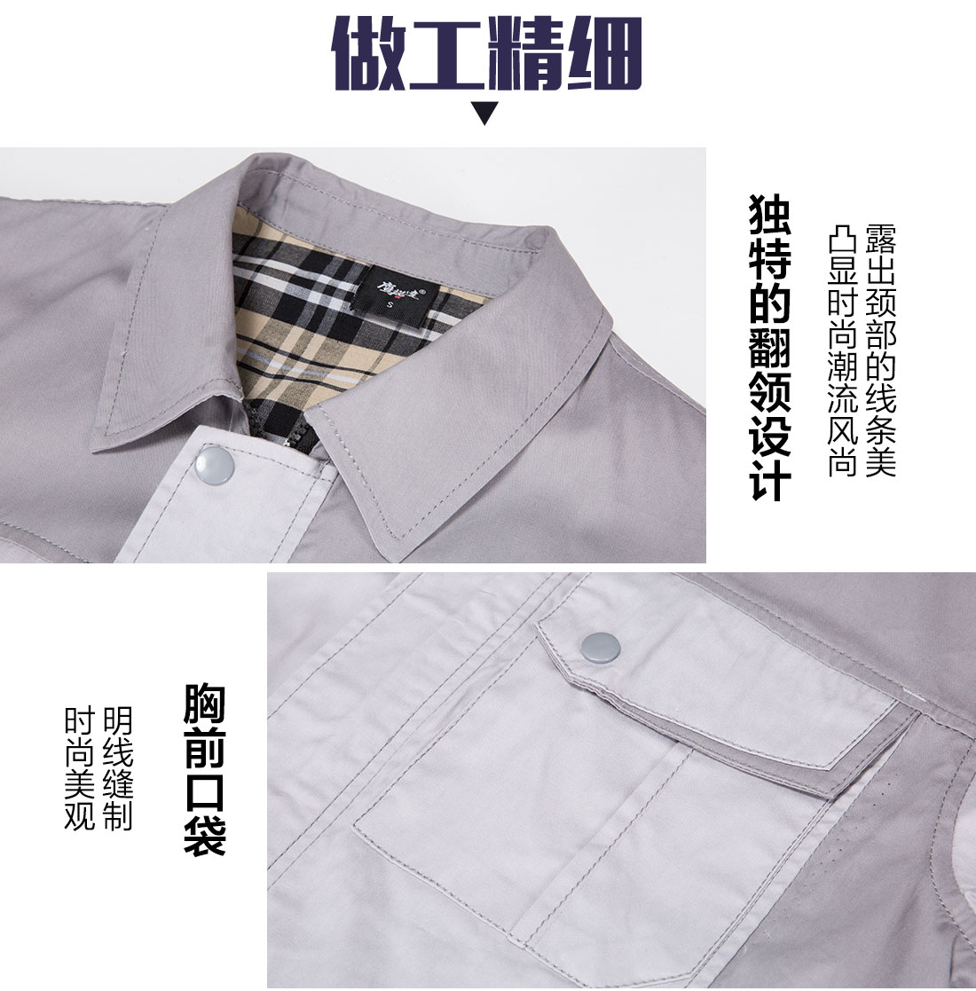 米白拼浅灰色夏季工作服AD17-1-XJ