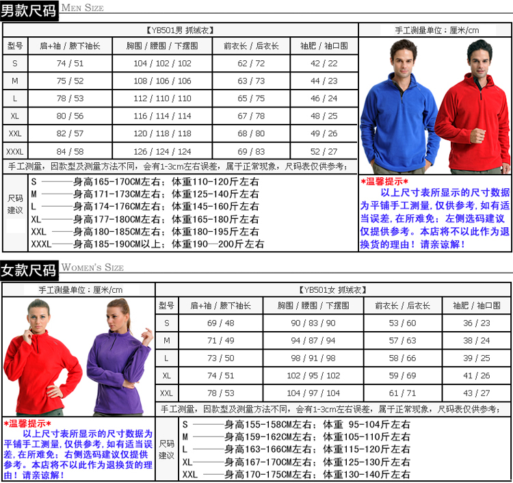 男女情侣可套穿舒适保暖抗静电抓绒衣ZRY501