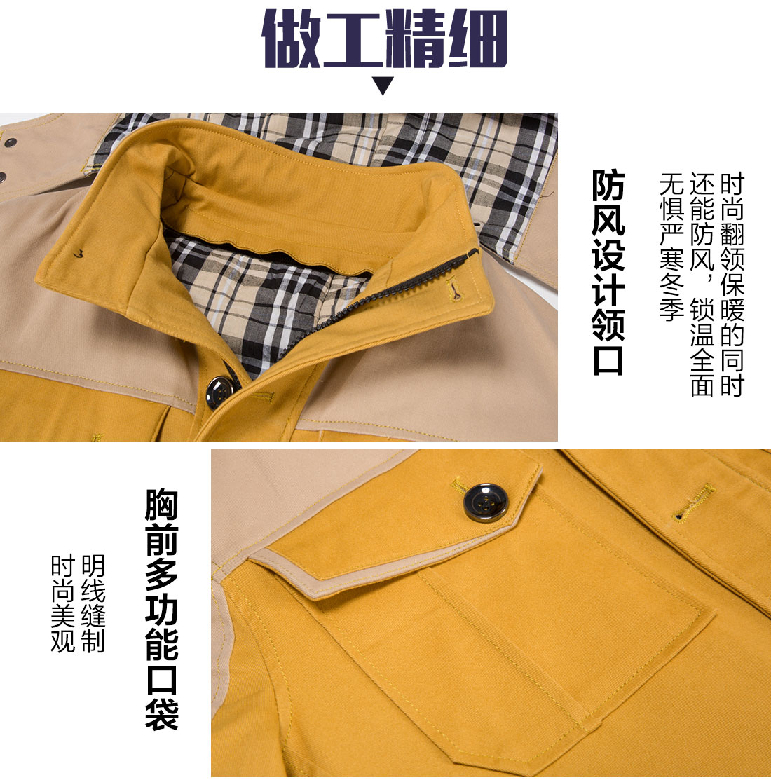 冬季服装厂家冬季工作服黄拼灰色MF20-4