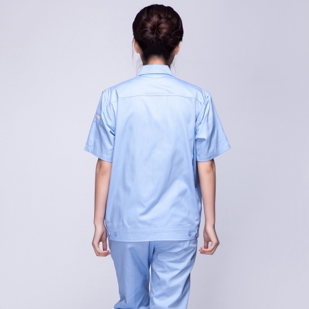 苏州鹰诺服装:浅灰拼绿色全棉工作服AC121-CQ