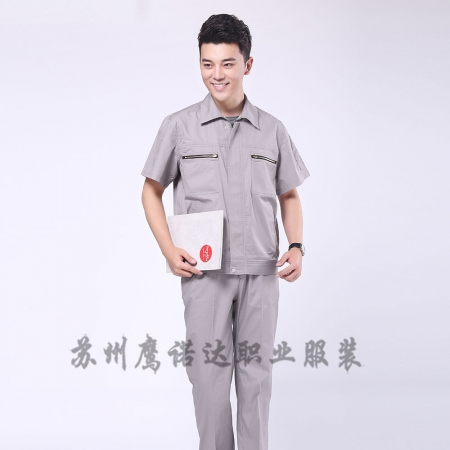 苏州鹰诺服装:浅灰拼绿色全棉工作服AC121-CQ