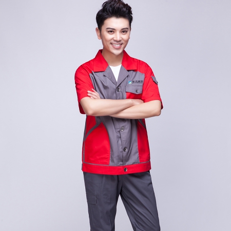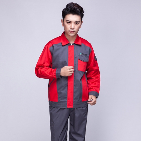 苏州鹰诺服装:红色拼藏青工作服AC13-2